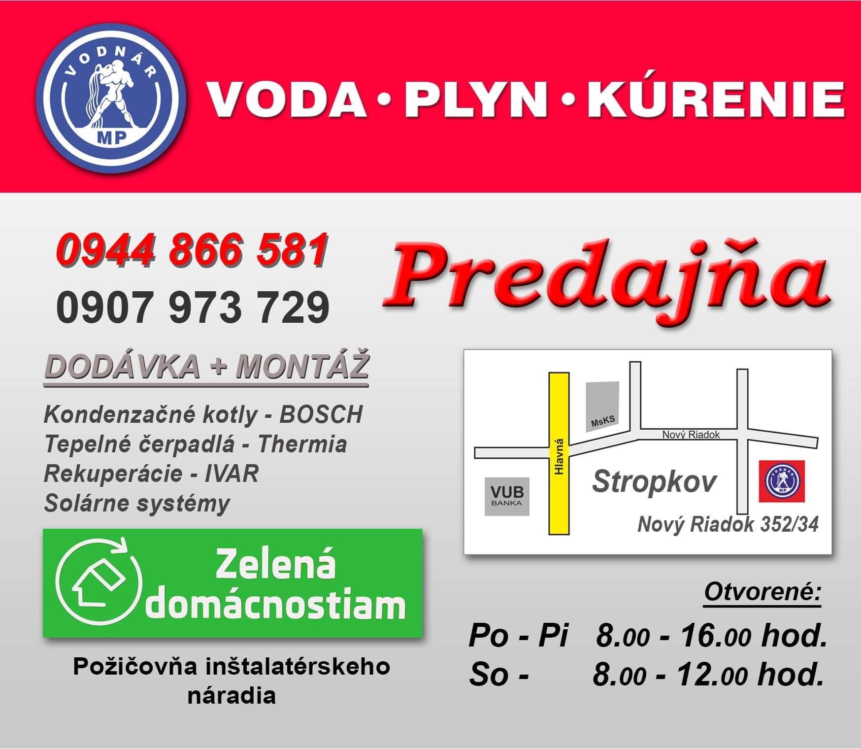 Počas pracovných dní vás radi privítame v našej predajni na ulici Nový Riadok v Stropkove, kde nájdete široký sortiment najmä vodárenského tovaru, ale kde Vám aj osobne poradíme.